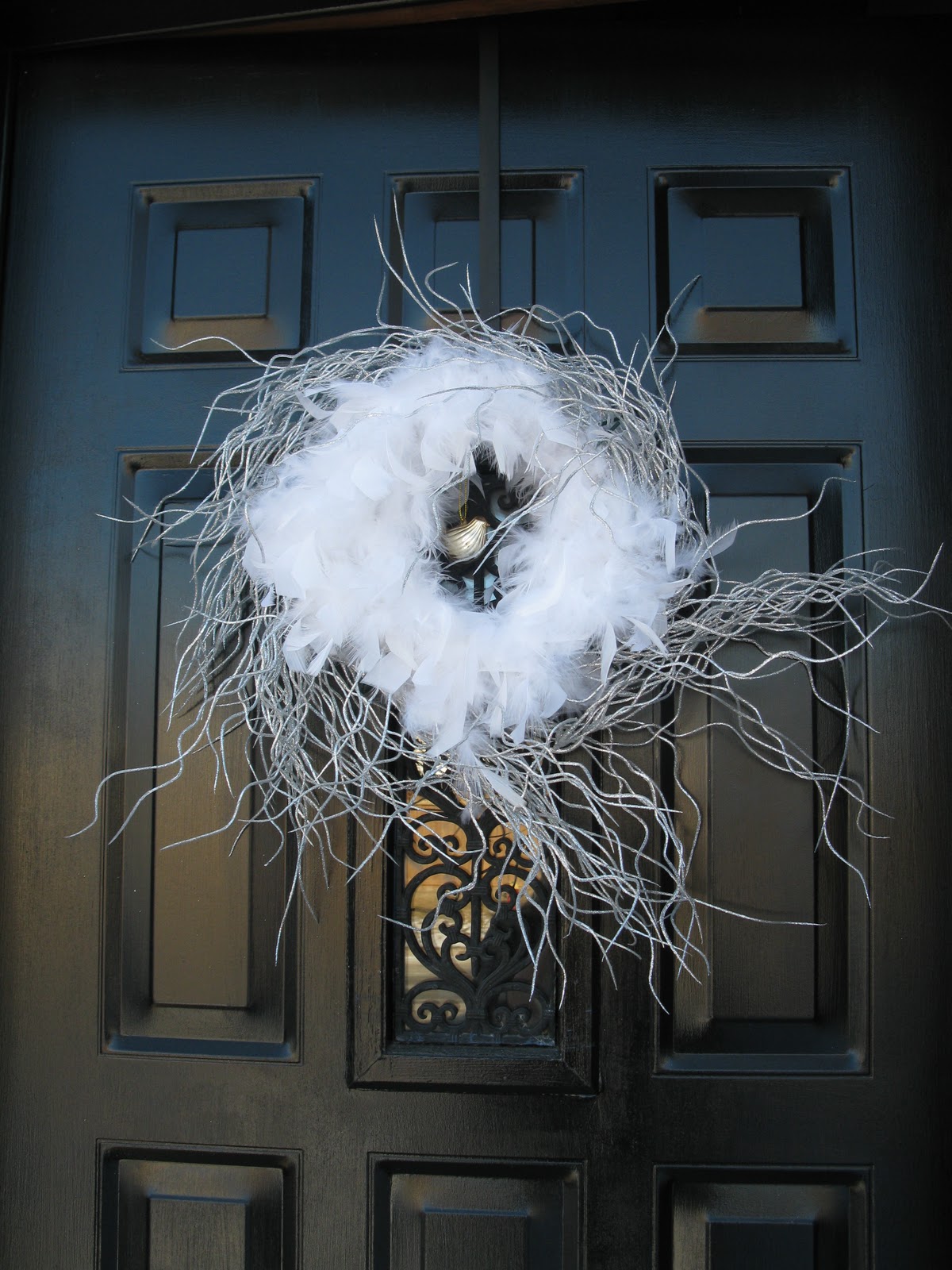 Today though, she had put that glass bird on the door inside the feathered nest that had replaced the Christmas wreath.
